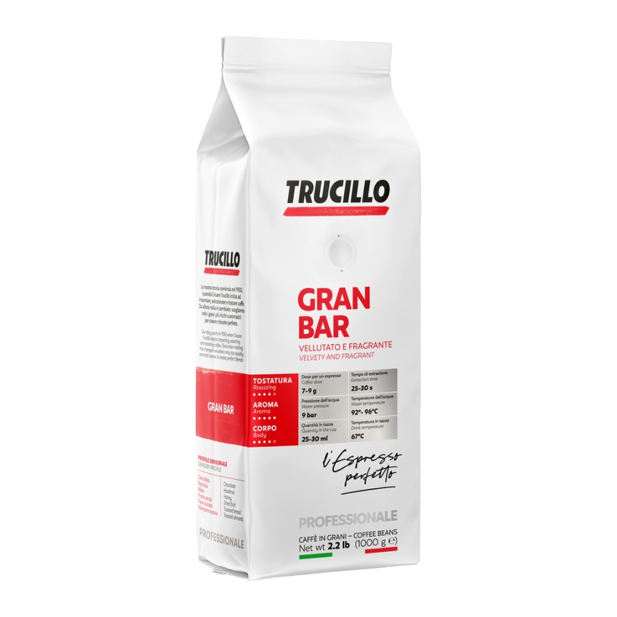 Trucillo Gran Bar Coffee Beans are crafted to deliver a rich, full-bodied espresso with a perfectly balanced flavor, aroma, and intensity. This premium blend combines carefully selected Arabica and Robusta beans to produce a velvety crema and a lingering taste with hints of chocolate, caramel, and toasted nuts. Ideal for espresso, cappuccino, or latte, Trucillo Gran Bar provides a refined and satisfying coffee experience. Designed for both professional baristas and home coffee enthusiasts, it ensures consistency, quality, and the authentic taste of Italian coffee culture in every cup.