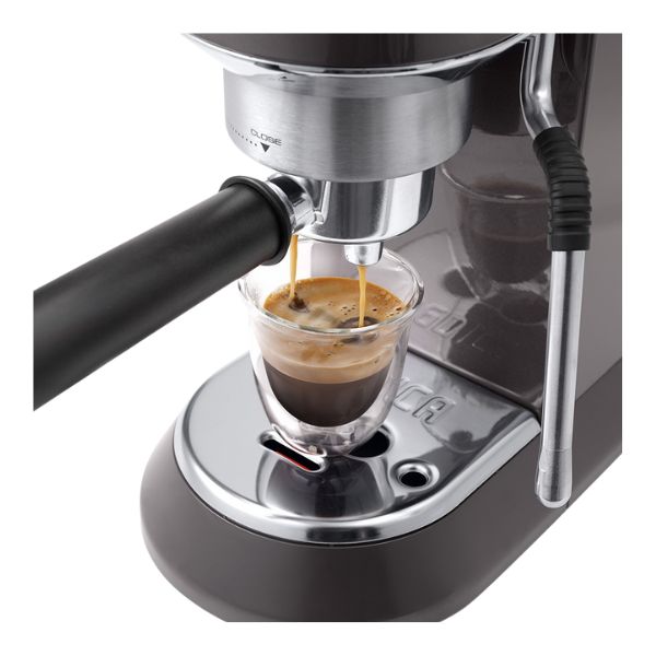 The De'Longhi Dedica Arte Coffee Machine is a compact manual espresso machine that brings barista-style coffee making into your kitchen with professional-level performance in a slim, stylish design. At only about 15 cm wide, it fits easily on crowded countertops while offering a 15 bar pressure pump and Thermoblock heating system for rich espresso with a thick, aromatic crema. It includes two filter baskets (for single and double shots), is compatible with both ground coffee and E.S.E. pods, and comes with a My LatteArt steam wand that lets you texture milk for cappuccinos and lattes, plus an adjustable drip tray for taller cups. Finished in sleek metal with intuitive controls and rapid heat-up, Dedica Arte delivers café-quality espresso and milk-based drinks at home with style and simplicity.