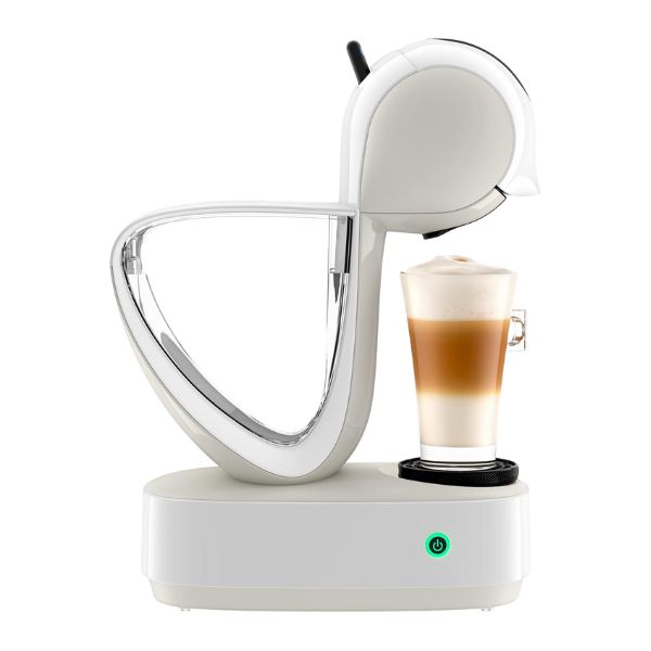 The De'Longhi Nescafe Dolce Gusto Infinissima Touch is a compact, pod-based coffee machine that lets you easily brew a wide range of hot and cold drinks right at home using NESCAFÉ Dolce Gusto capsules. It features an intuitive touch-sensitive control panel so you can customize drink volume with a simple tap, plus a generous 1.2 L removable water tank that reduces refills and an adjustable drip tray to fit everything from espresso cups to tall glasses. With up to 15 bar pressure, it delivers rich, aromatic coffee with velvety crema, and supports both hot and cold beverage options including espresso, cappuccino, latte macchiato and more, all with automatic flow stop and energy-saving auto shut-off for everyday convenience.