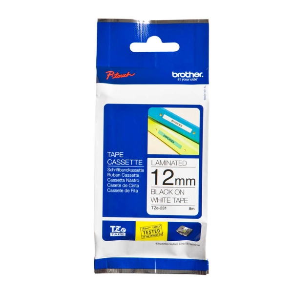 Brother TZe label tapes are high-quality, laminated tapes designed for durable, long-lasting labels in both indoor and outdoor environments. This range includes various widths — from 6mm up to 24mm — all featuring black text on a white background. These tapes are resistant to water, fading, abrasion, extreme temperatures, and chemicals, making them ideal for office, industrial, and home use. Each tape delivers crisp, easy-to-read labels that adhere strongly to smooth, flat surfaces. Compatible with a wide range of Brother P-touch label printers, these TZe tapes are perfect for labeling cables, shelving, tools, panels, storage boxes, and more.